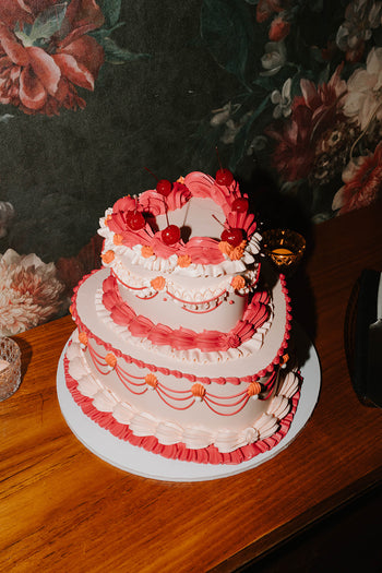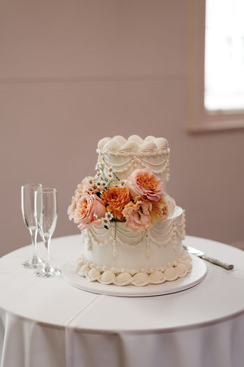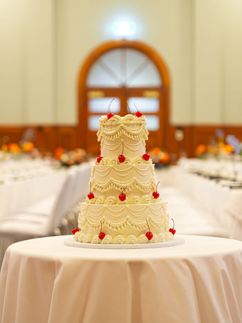 Our design process is highly personalised, taking into account event's colour scheme, floral design and your mood board. Whether you envision a single-tier or stacked cake, slab style or heart-shaped, we can bring your vision to life!